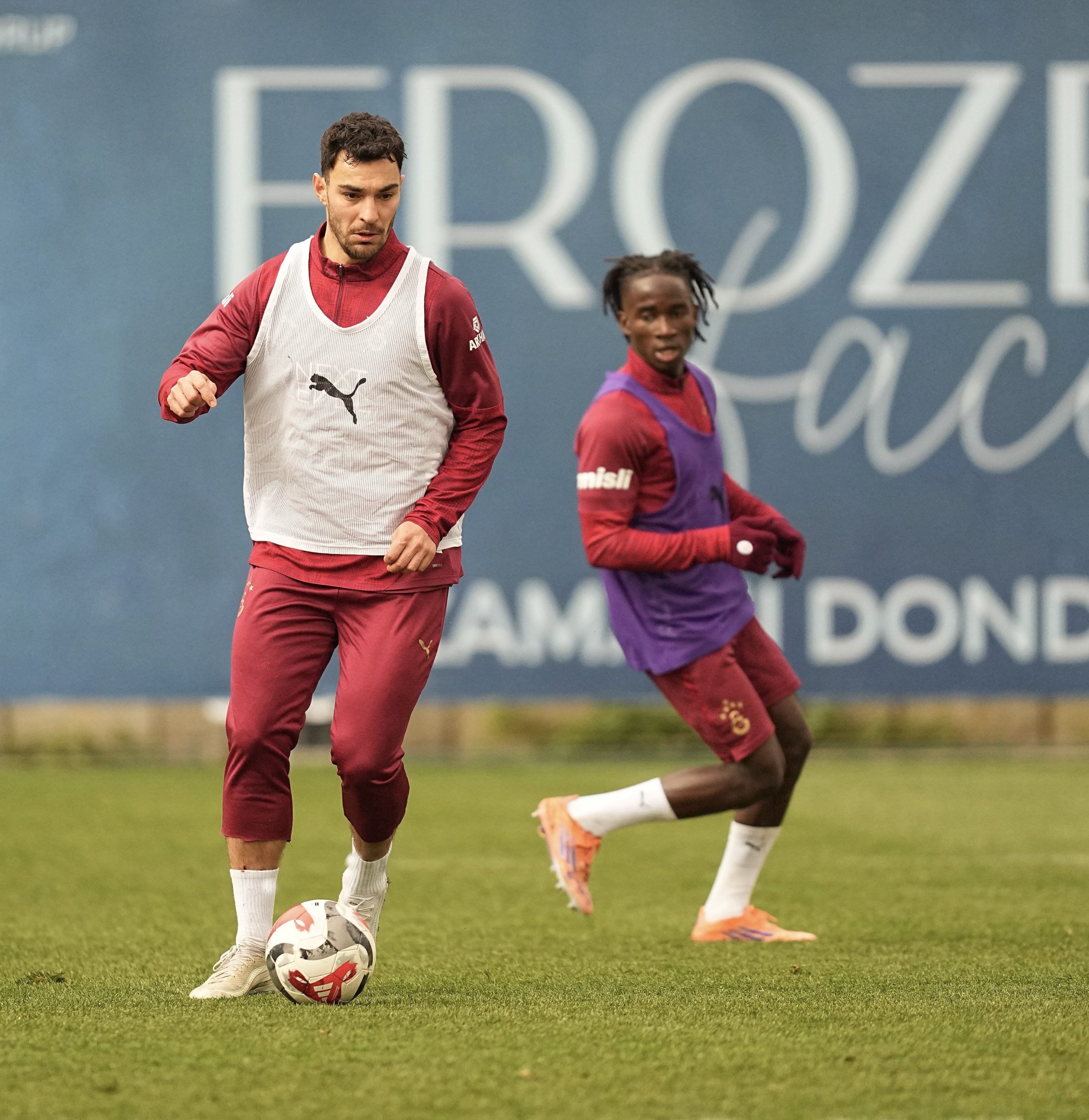 Kemerburgaz Metin Oktay Tesisleri’nde Teknik Direktör Okan Buruk yönetimindeki antrenman dinamik ısınmayla başladı ve 8’e 2 pas çalışmasıyla devam etti.